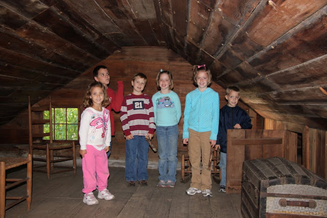 As it turned out, I was to make a trip to that area in October for a work meeting, so I took Ben and Mom with me. We met up with our friends Candace and Melissa, and their adorable kids, for a trip to Crockett Tavern. We thought it would be a quick little tour and we would then head down to the Davy birthplace, but the Tavern tour ended up taking a couple of hours. The curator of this museum, Ms. Sally, was a former history teacher, and since we were the only ones there, she took a lot of time showing us everything there was to see and giving us quite a history lesson as well.