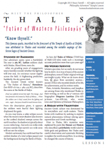 With Philosophy Adventure, your student (or you!) will take a trip back in time, studying the lives of 8 pre-Socratic thinkers, learning about the time and place in which they lived and what they believed. Some of these philosophers include: Thales, Pythagoras, and Heraclitus. Lesson assignments explore how to contrast the beliefs of each philosopher against a biblical worldview and how to express these contrasting views in writing, thought and speech.