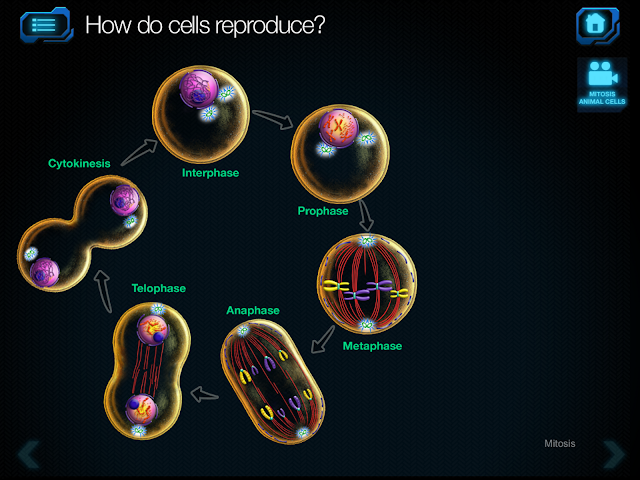 When you first tap open Cell and Cell Structure, you’ll find 3 options on the main page — All About Cells, Videos, and Interactive Activities. When you tap on “All About Cells” the smaller screen opens to give your students options for what to learn about the cell.
