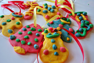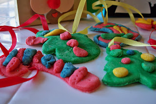 They boys spent most of the evening playing Star Wars games, hide-n-seek, and Legos. But I did manage to get them settled down for awhile to make some salt dough Christmas ornaments. They had a great time and were very proud of their work in the end. If you have never made salt-dough ornaments, you will find the recipe and instructions here. We did not paint our ornaments. Instead, I opted to color the cough with food coloring instead. It worked out really well for these active boys, who I’m sure, would not have wanted to take much more time than they did for this project. Here are some pictures of our final products…