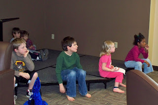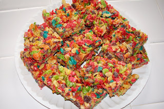 While the children listened to the stories, they ate a yummy snack of “Rainbow Treats.”  These are made with the recipe for “Rice Krispies Treats,” only Fruity Pebbles are used in place of the Rice Krispies.  Aren’t they pretty?  They were yummy, too!