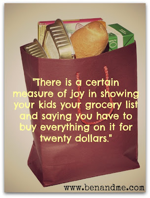 There is a certain measure of joy in showing your kids your grocery list and saying you have to buy everything on it for twenty dollars. The kids learn about comparing per ounce prices, they like competing against their siblings for the best bargains (sibling rivalry can work for you!) and they also learn that there are things they can do without. It requires creativity while teaching your kids that being a good steward of our money doesn’t have to be tedious.