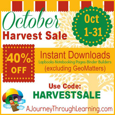 An now, please indulge me while I make a PSA for my sponsor, A Journey through Learning — they are currently having a great sale on nearly all of their lapbooks, notebooking pages, and Binder Builders — 40% off! This is a great time to stock up on those Thanksgiving and Christmas lapbooks! Or if you use Apologia Science, they have awesome lapbooks to go along with those as well. AJTL has been our favorite lapbook company for years. I am thrilled to be partnering with them at Allume!