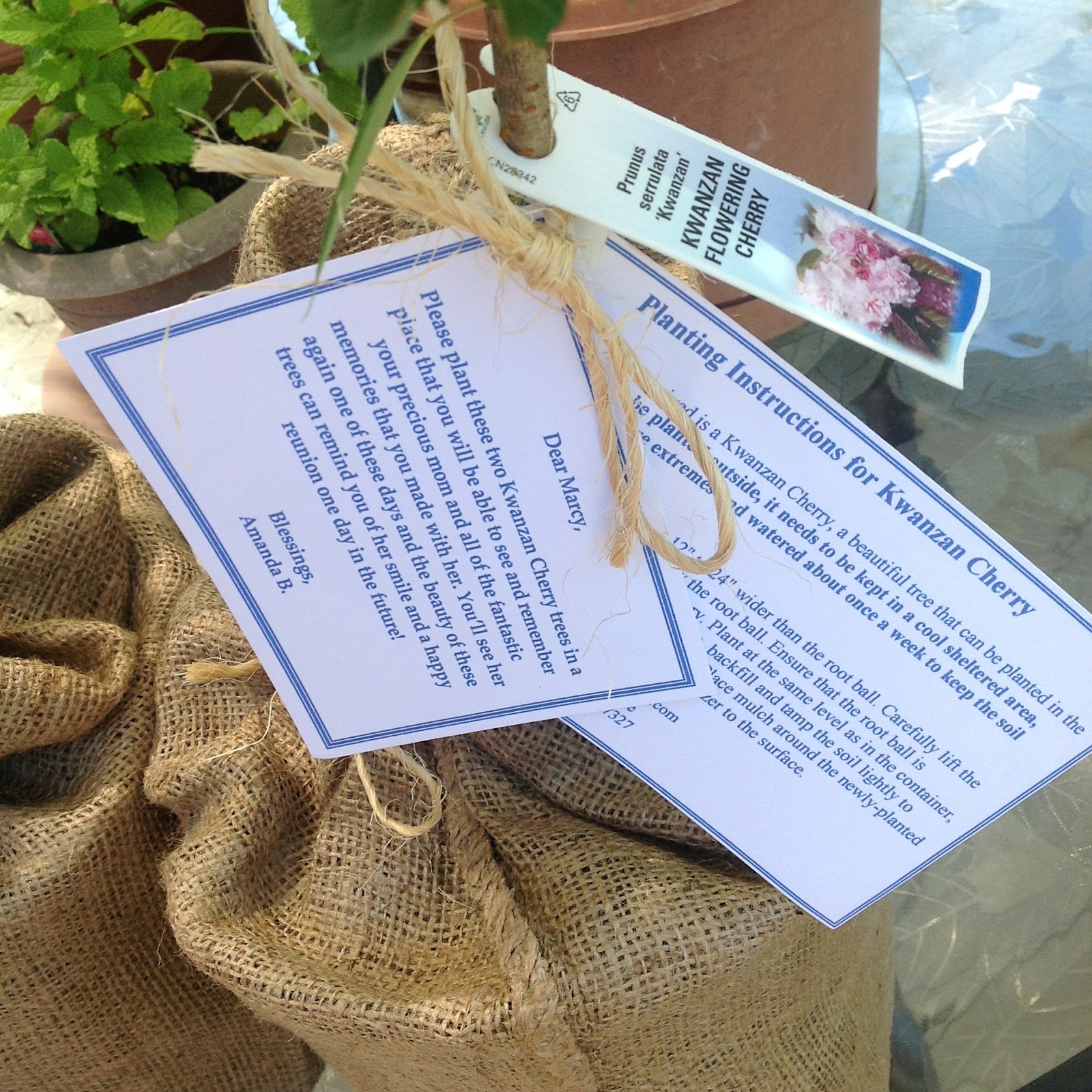 Speaking of friends . . . I received a special delivery this week from a sweet friend — two Kwanzan Cherry trees to plant in celebration of my Mom’s life. Mom went Home 7 months ago and having these lovely trees to remember her is just precious to me.