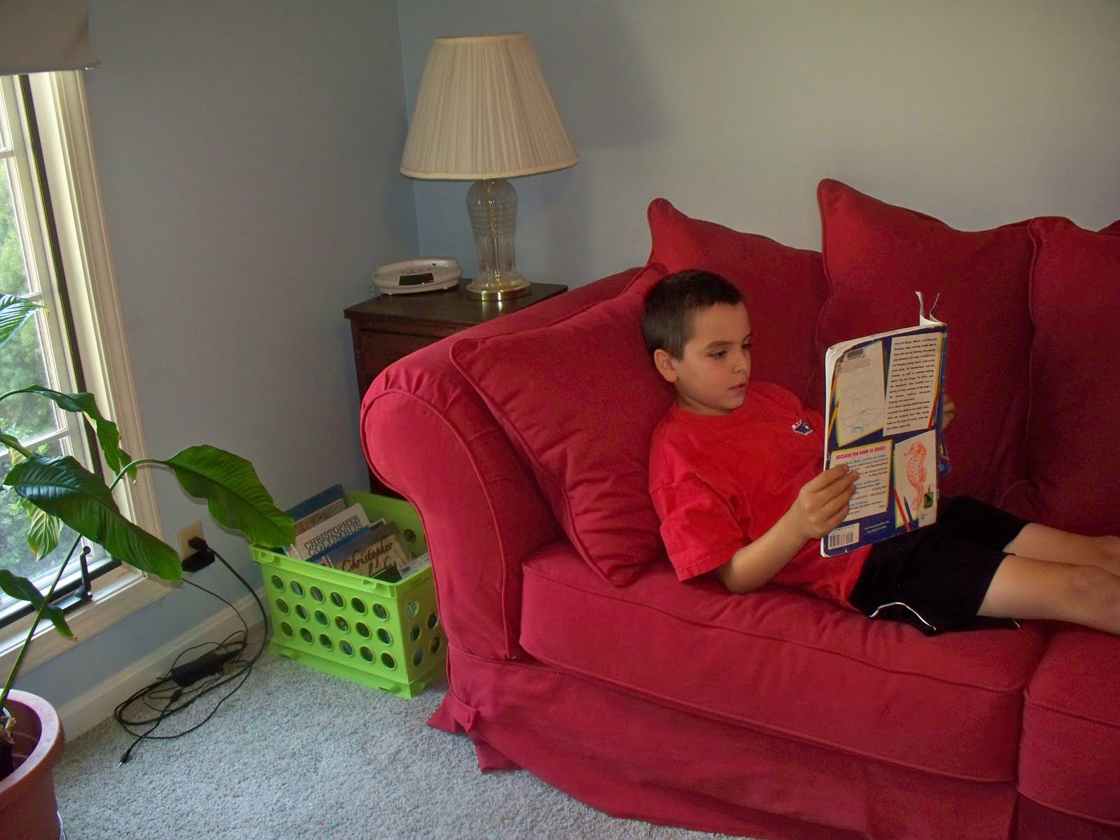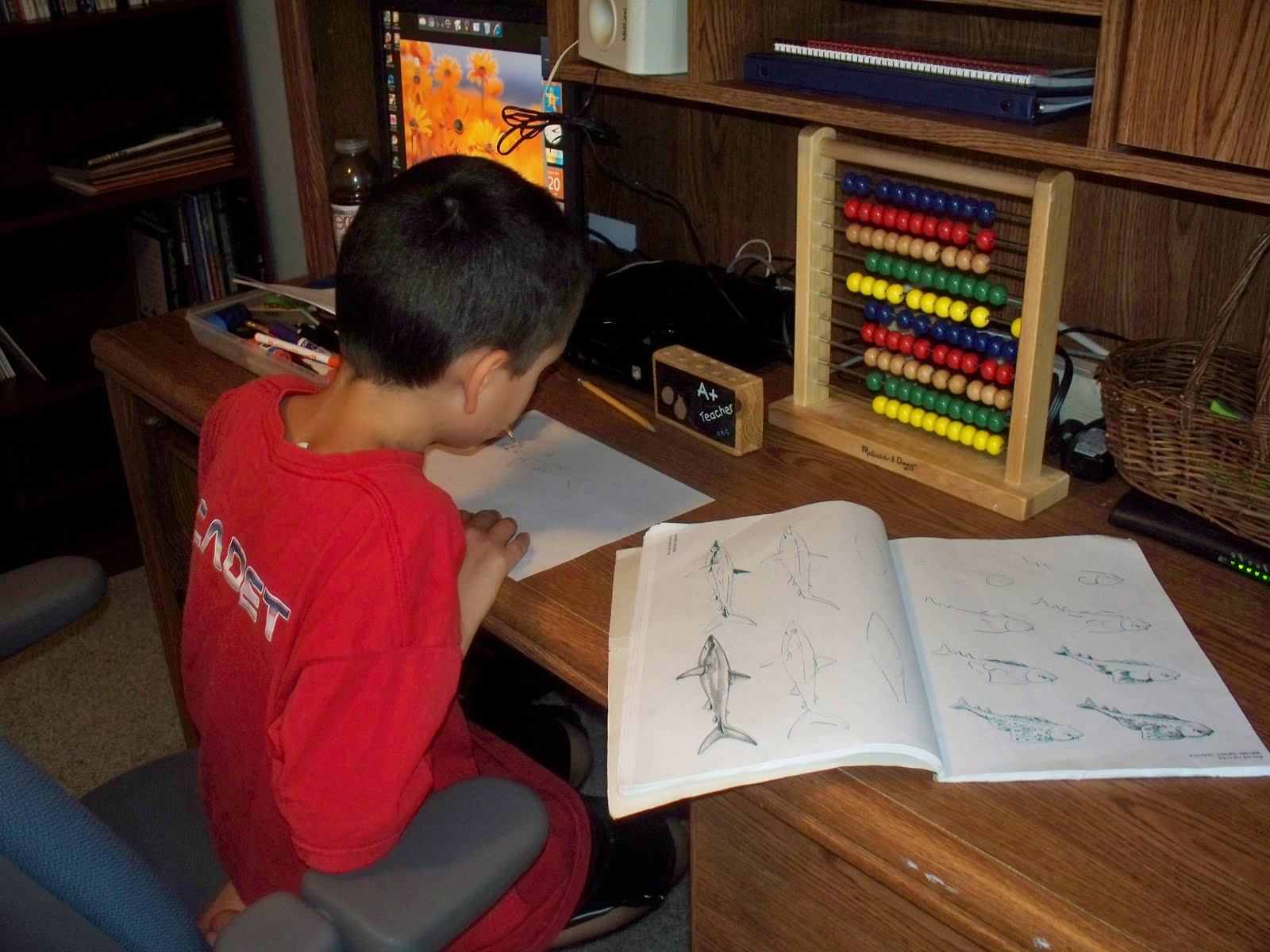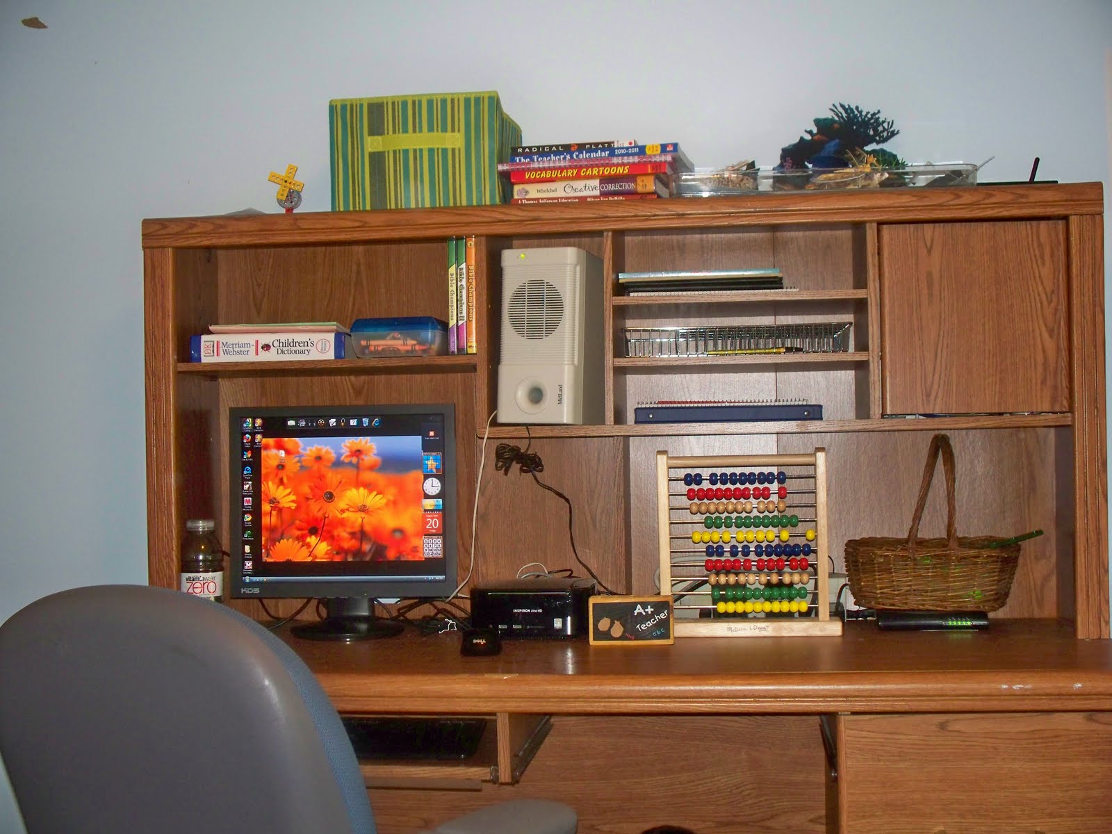 Ben and I have been hard at work this week, turning our former guest room/office into our new school room. In the past, I never really had the desire for a school room. We just did school wherever….kitchen table, family room sofa, deck, park, everywhere! But this year, Ben is doing more work using his desktop (Amanda Bennett unit studies, Download N Go, Teaching Textbooks, Time4Writing, etc.), so it made sense to center our homeschool around his computer. Besides, he was borrowing my laptop far to much 😉 We’ll still go to the kitchen table for larger or messy projects.