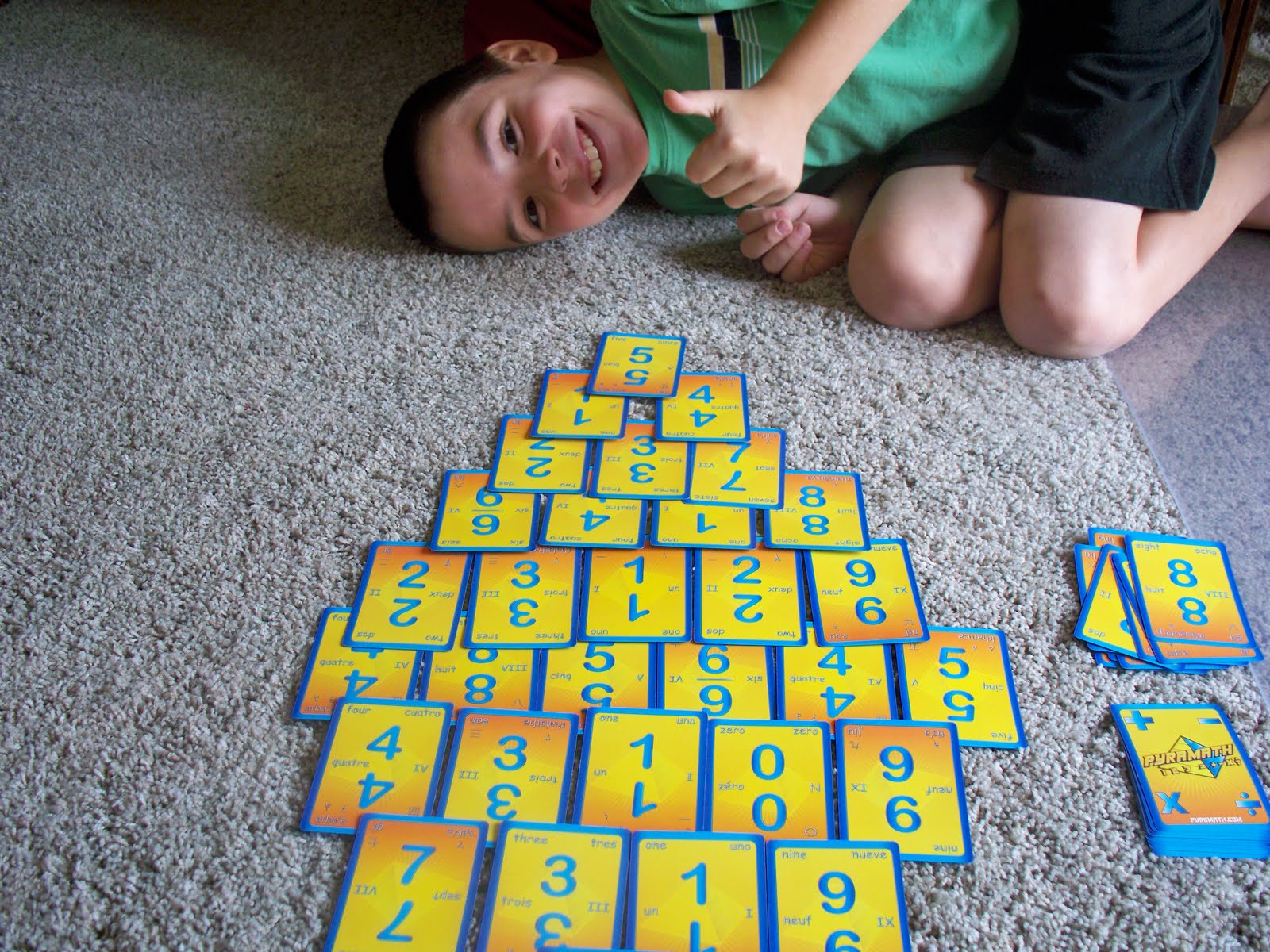 I’m always looking for games and other activities to reinforce basic math skills for Ben.  He has always struggled a bit in this area, and sometimes feels like he’s “bad in math.”  So we were very excited to have the opportunity to play Pyramath, from I See Cards.