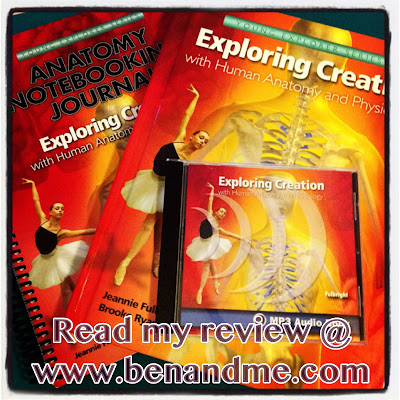 For the past few weeks, Ben and I have been using Exploring Creation with Human Anatomy and Physiology by Jeannie Fullbright. We received the entire curriculum set: Textbook ($39), Anatomy Notebooking Journal ($24), and MP3 Audio CD ($29). Written for the elementary- aged student in mind, this curriculum is easily adapted to middle grade students as well. Ben is a sixth grader, and it was perfect for him. For younger students, there is a Junior Notebooking Journal available for purchase ($24).