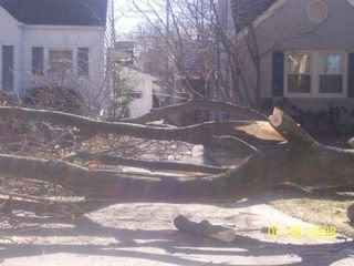 With the fierce winds that barreled through KY last night came lots of damage. In Louisville, there was one area particularly hard hit. It happens to be the area of town where we used to live and still own a house.