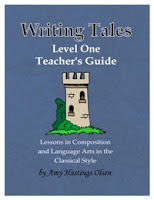 Ben and I are excited to bring our readers a review of Writing Tales, a comprehensive writing and grammar curriculum in the classical style. Based on the first level of the ancient progymnasmata writing exercises used by the Greeks, Writing Tales teaches grammar level students (grades 3-5 those of you who are not so classical) how to write by studying and rewriting classic tales and fables. Writing Tales come in two Levels, Level One for 3rd-4th grade, and Level Two for 4th-5th grade. We received both for review, but only used Level One.
