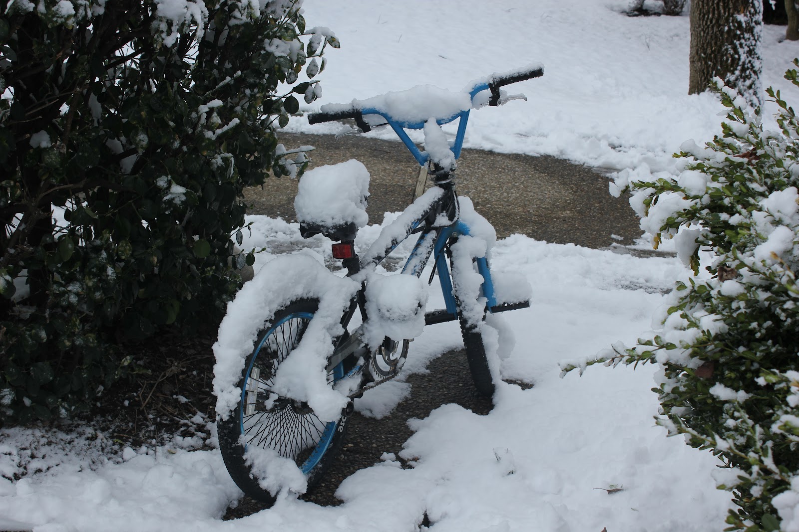 Just 3 days ago, it was 70 degrees and tornado warnings had us huddled in the basement. In fact, tornadoes ripped through towns all around us. leaving behind destruction, devastation and death. For the past few days, Ben has spent more time on his bike than in a coat.