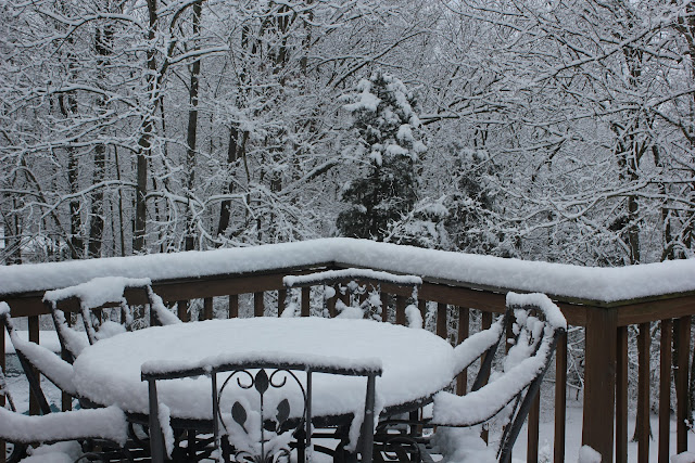 But this morning, we awakened to find about 3 inches of snow had graced our lives. Beautiful, soft white snow. It won’t last long. The forecast for today is sunny with temps in the low 40s. The rest of the week calls for temps in the 50s and 60s.
